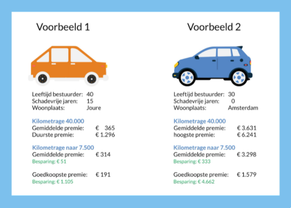 Uit onderzoek van MoneyView blijkt dat je flink kunt besparen als je verwacht minder te rijden komend jaar. Om inzichtelijk te maken wat je kunt besparen, zijn twee profielen opgesteld. Eén profiel met een goedkopere auto en gunstige omstandigheden, zoals veel schadevrije jaren en woonplaats in een rustig dorp. Het andere profiel is minder gunstig en heeft een duurdere auto, geen schadevrije jaren en als woonplaats Amsterdam.